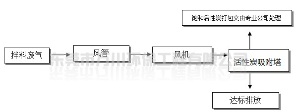 拌料固化產(chǎn)生的屬于揮發(fā)性的有機廢氣,通過車間內(nèi)合理布管,由引風(fēng)機抽至車間外處理后排放,處理能力為18000m3/h,系統(tǒng)設(shè)于車間樓頂。
