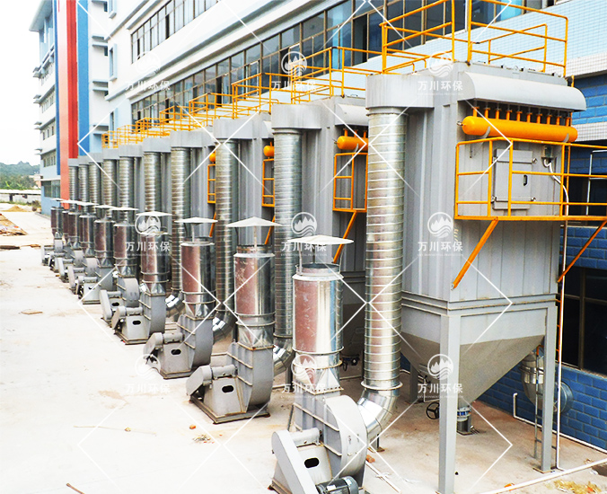 因生產(chǎn)打磨工藝品時(shí)會(huì)產(chǎn)生大量的粉塵氣體,秉承對(duì)員工生產(chǎn)環(huán)境負(fù)責(zé)的態(tài)度,美景實(shí)業(yè)在對(duì)比多家廢氣處理廠家后,最終決定采用萬(wàn)川環(huán)保廢氣處理設(shè)備--脈沖布袋除塵器。