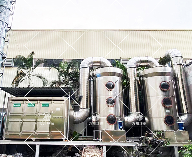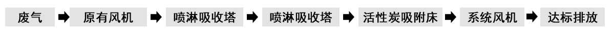 根據(jù)客戶需求和我司實地考察之后,最終采用‘兩級噴淋吸收法+活性炭吸附法’對其進行處理。采用水噴淋一方面可以降溫,另一位方面能夠讓水吸收一部分的有機廢氣,降低后續(xù)活性炭吸附的負荷。