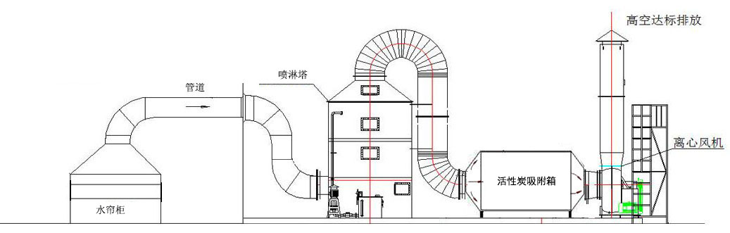 中等排放量,常見的過程有:收集-噴霧塔-活性炭吸附箱(或UV光解)-風(fēng)扇-排放過程。