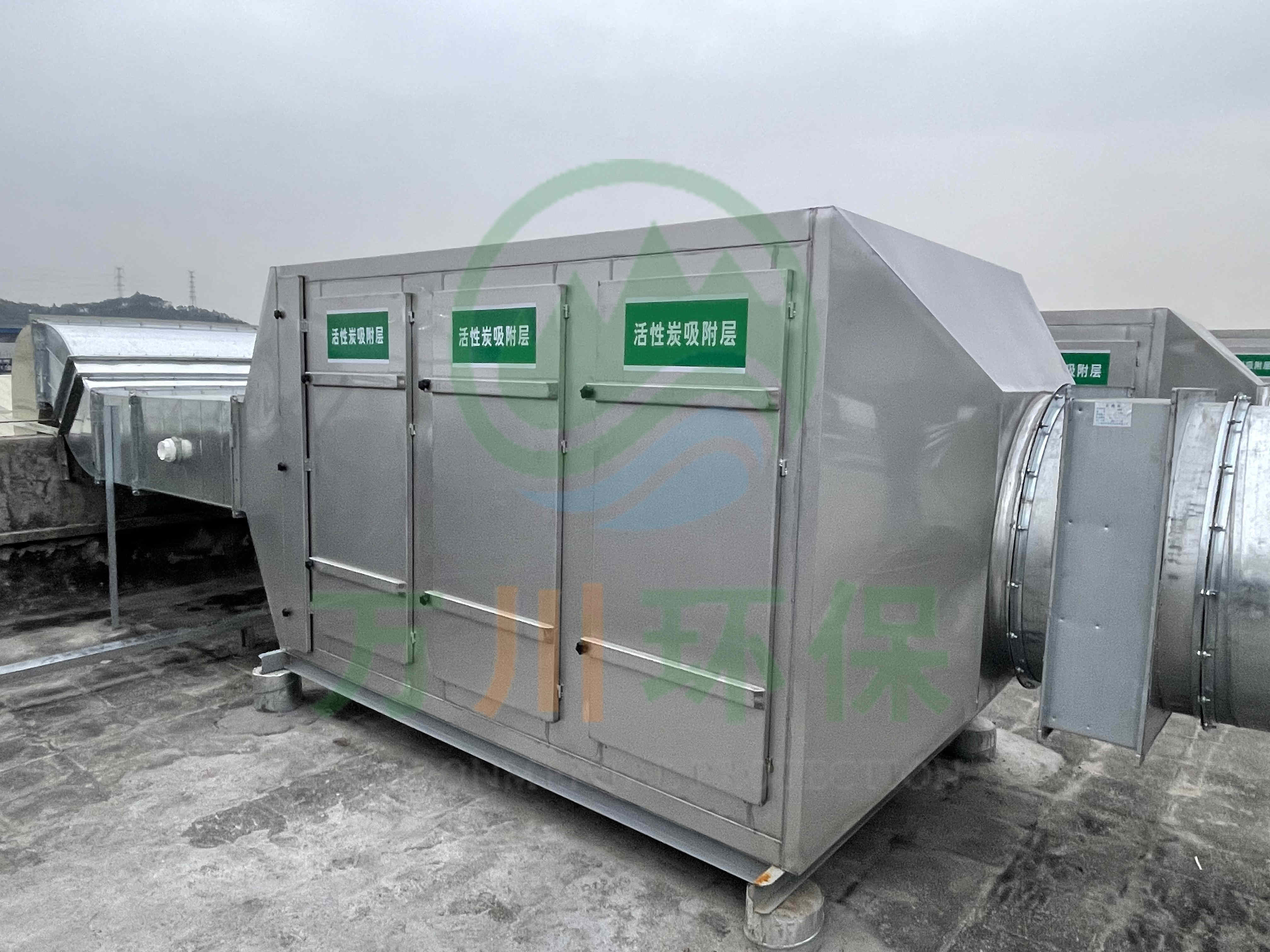 在廢氣處理上選用了活性炭吸附法,我們以活性炭作為吸附介質(zhì),廢氣通過(guò)活性炭吸附裝置,活性碳吸附有機(jī)揮發(fā)物,使其與氣體混合物分離,從而使氣體得到凈化。